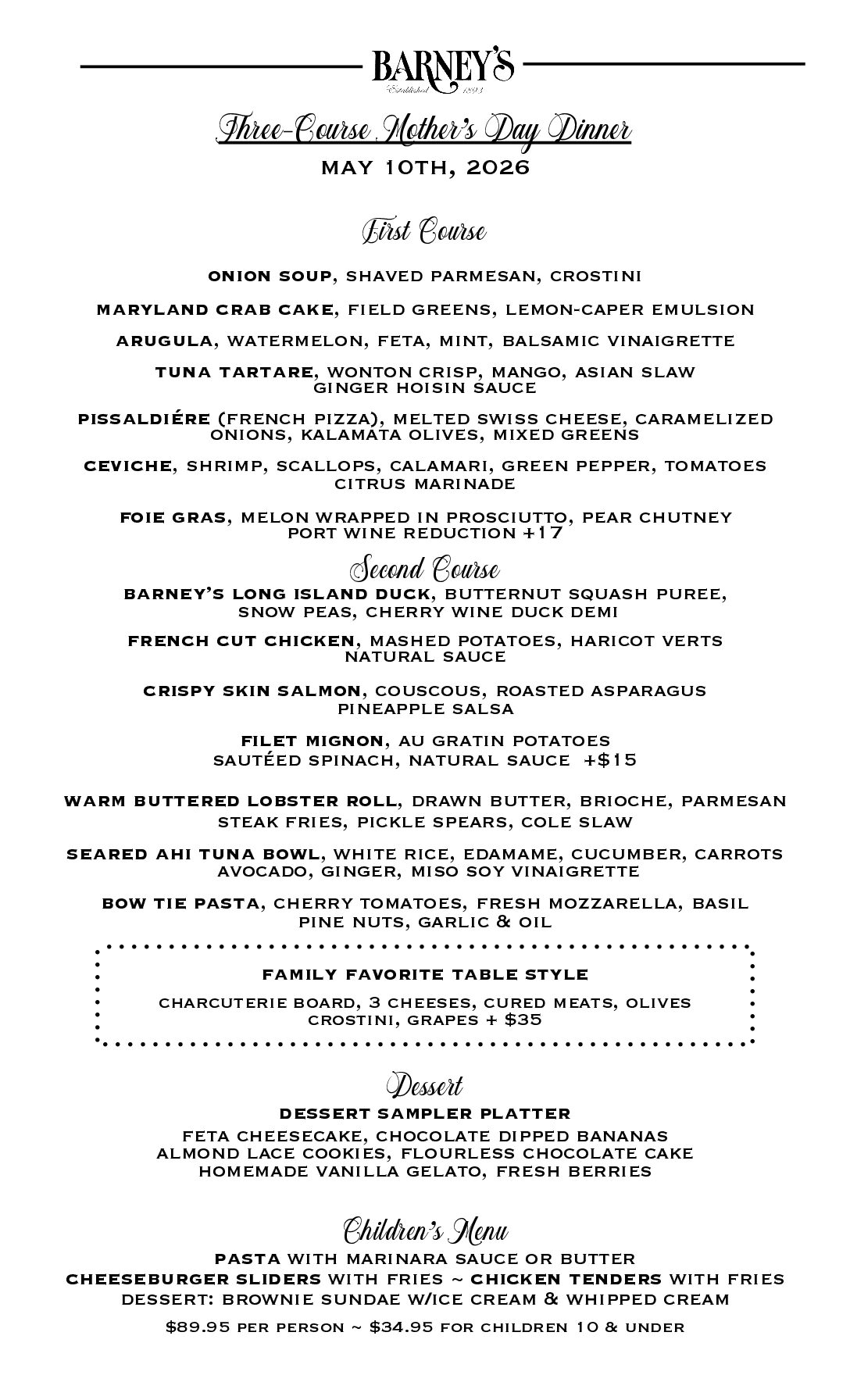 Mother's Day Menu